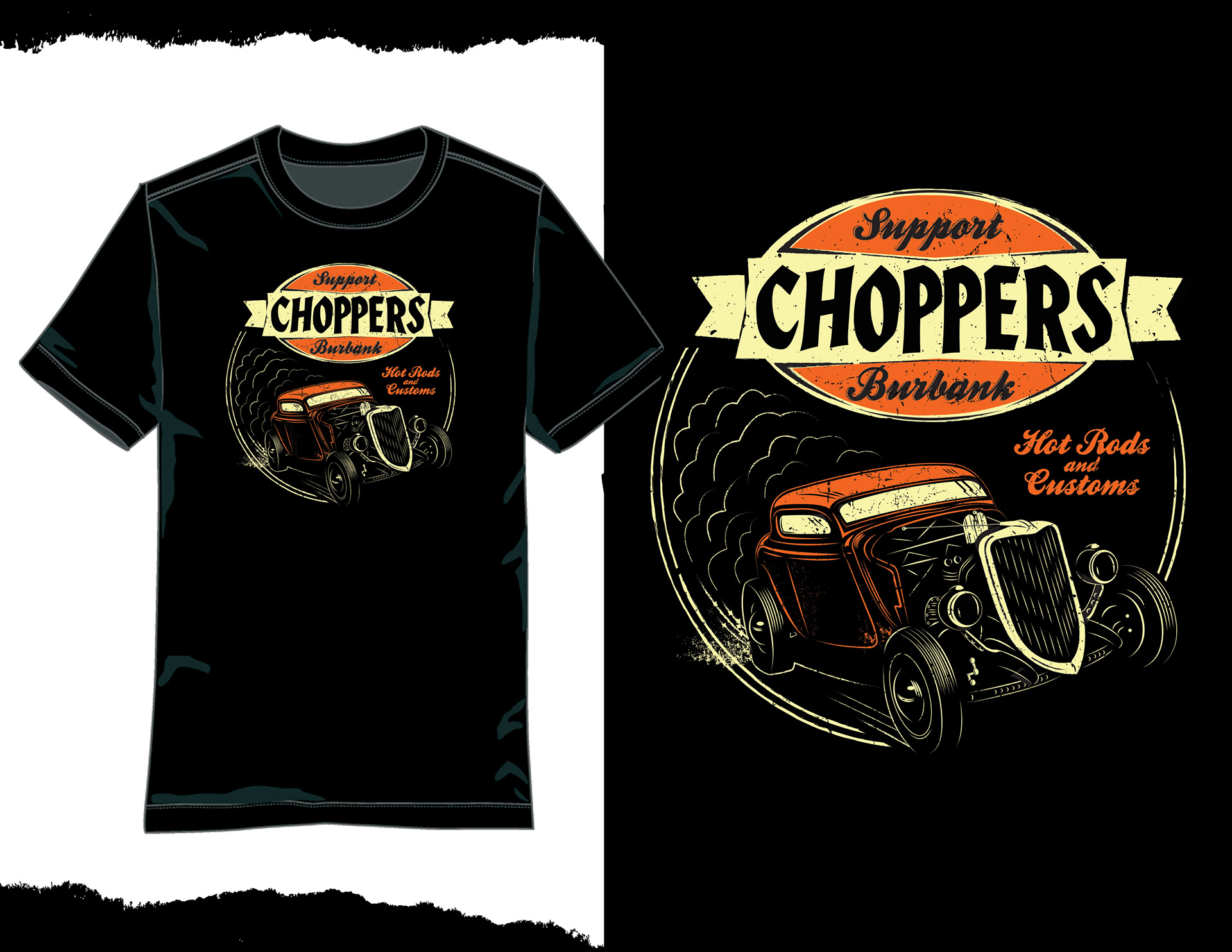 print design created for burbank choppers car club. commissioned by