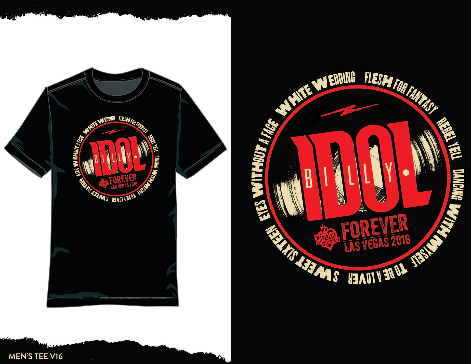 graphic print for unisex tee designed for Billy Idol Residency at